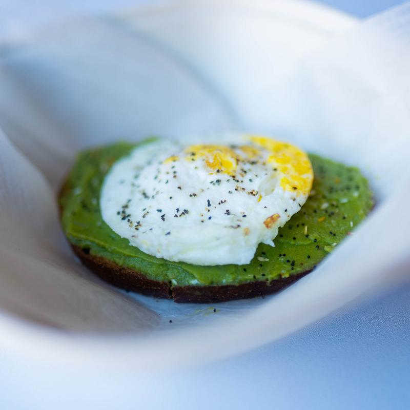 Avocado spread, egg, micro greens, everything bagel seasoning.